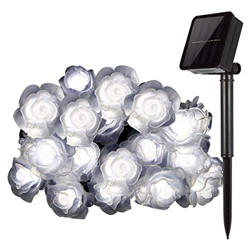 Catena Luminosa Solare, KEEDA 30 LED Rosa Fiore Stringa Luci Solari Impermeabile Esterno Giardino Decorazione per Terrazza Cortili Matrimonio Natale Festa (Bianca)