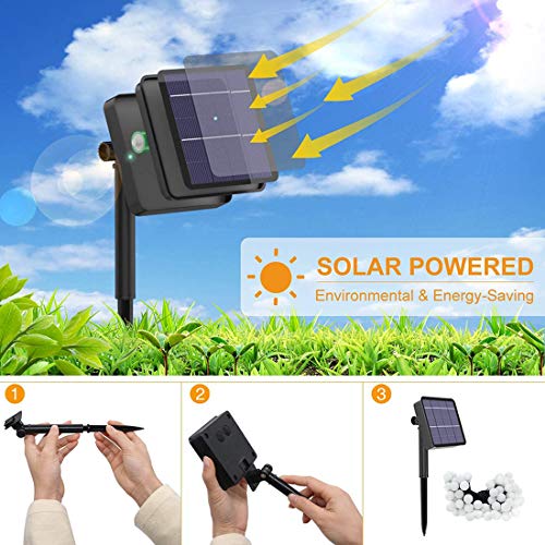 [Facile da usare] -12 metri (incluso cavo di alimentazione da 2 m), 100 LED, il diametro della sfera è di 2 cm e la distanza tra i LED è di 15 cm. 2 pulsanti: pulsante ON / OFF, pulsante modalità. 8 modalità: normale e lampeggiante. Il pannello solare non è impermeabile, la stringa di luce è impermeabile IP54