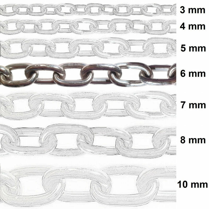 Catena a maglie corte realizzate in acciaio inox DIN5685 AISI 316 Spessore del filo: 6 mm - Lunghezza della maglia della catena all'esterno: 36 mm - Lunghezza della maglia della catena all'interno: 24 mm - Larghezza della maglia della catena all'esterno: 24 mm - Larghezza della maglia della catena all'interno: 12 mm. Carico di rottura: kN 11,5 - Peso al metro catena: 0,730 kg. Le maglie della catena saldate industrialmente forniscono un'elevata stabilit� e resistenza. L'acciaio inossidabile � resistente agli acidi e all'acqua di mare quindi � l�ideale per applicazioni marittime. La catena DIN5685 a maglia corta viene utilizzata per fissaggi di qualsiasi genere nella nautica, nei cantieri edili, in agricoltura, sulle macchine agricole e nel settore metalmeccanico. Sono adatte per molteplici utilizzi: barche, ancore, boe, catene portuali, catene di trazione, rimorchi, catene per carico, catene per trasporto, catene per bestiame, catene da neve, recinzioni, altalene.