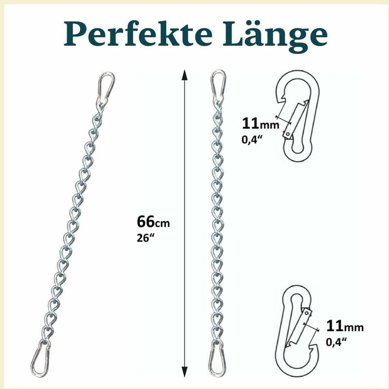 Area di applicazione: Per applicazioni interne ed esterne, adatto a tutte le strutture in calcestruzzo e legno. Ideale per amaca e resistori, kit per l'oscillazione degli hammock. Capacità di ricarica di due persone con 230 kg di Molto semplice: la catena sospesa può essere installata in secondi. Con due catene ad anello a gancio, è possibile adattarsi all'altezza desiderata lunghezza perfetta: lunghezza totale 66 cm;