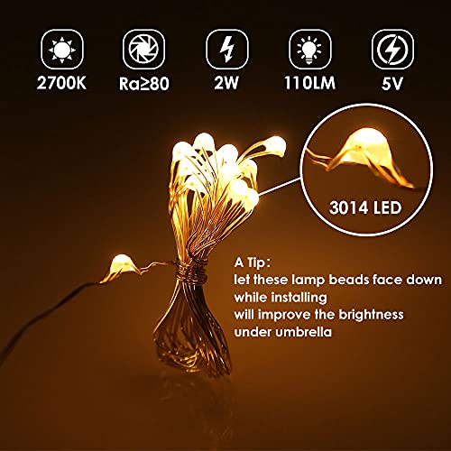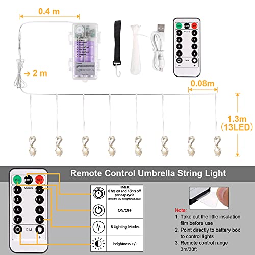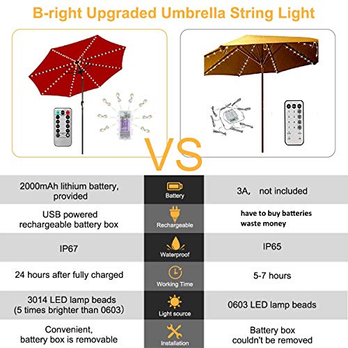 Catena di luci per ombrelli,B-right per ombrellone Illuminazione per ombrelloni Strisce luminose a LED con telecomando,batteria ricaricabile,104 LED,per la decorazione di ombrelli,tende da campeggio.