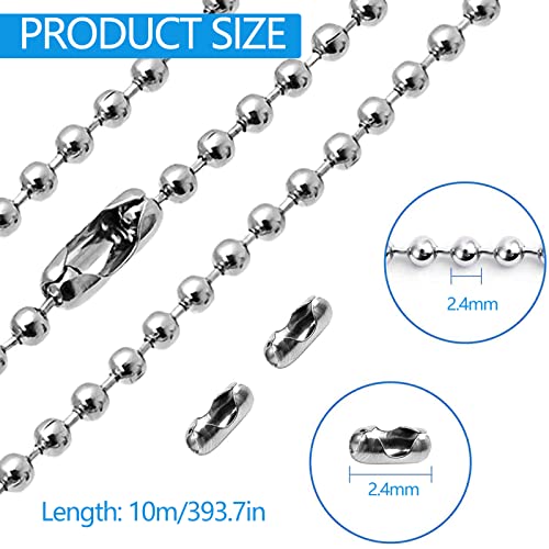 Catena di Perline in Acciaio Inox, Catena a Palline in Acciaio Inossidabile, 10M Argento Catena Rullo, con 20 Connettori Corrispondenti, Per la Realizzazione di Collane di Gioielli ecc (2.4 mm)