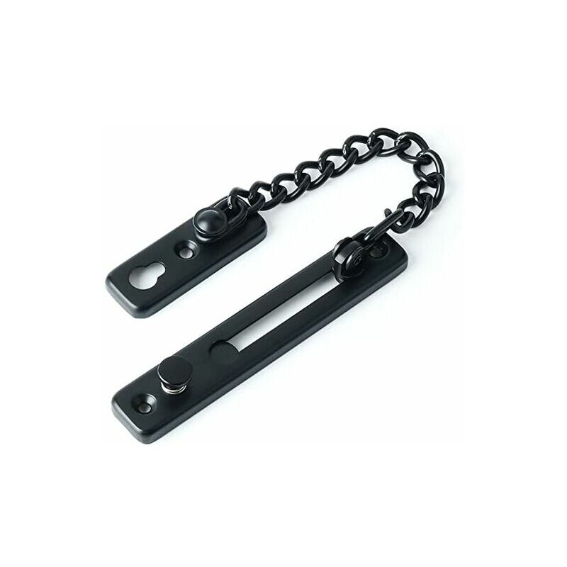 Le protezioni della porta della catena sono realizzate in resistente acciaio inossidabile SUS304 di alta qualità. Finitura nera opaca a 3 strati che resiste ai graffi, alla corrosione e all'appannamento di tutti i giorni. Viene fornito con una protezione antifurto caricata a molla e un blocco a pressione e fornisce protezione affidabile contro gli intrusiDimensioni: lunghezza del corpo 12,7 cm;