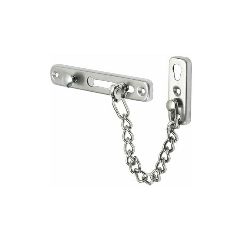 Buona costruzione: realizzata in acciaio inossidabile SUS 304 di alta qualità, questa catena per porta garantisce buona qualità e longevità. Finitura spazzolata: il trattamento spazzolato aiuta a resistere alla corrosione e a rimanere come nuovo dopo un uso prolungato. Comodo e affidabile: premi il pulsante di blocco antifurto con molla che fornisce protezione contro le intrusioni. Dimensione: lunghezza del corpo: 12,3 cm;