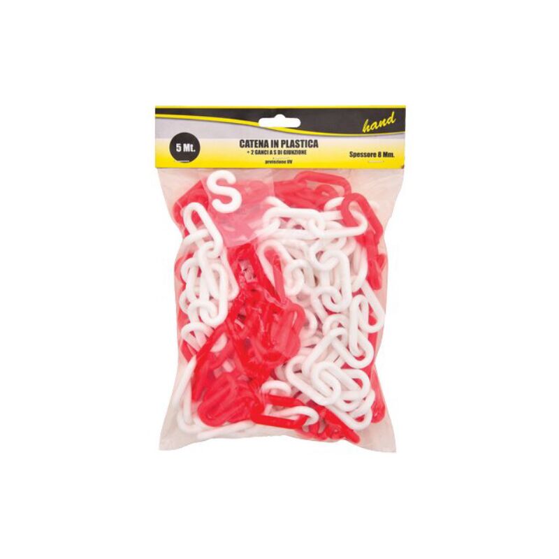 Catena segnaletica hand (2 pezzi) Plt bianco/rosso d.mm 8 mt 5 in plastica. bianco/rosso.