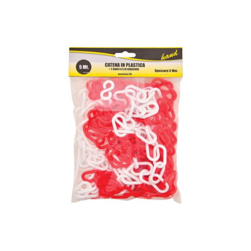Catena segnaletica hand (2 pezzi) Plt bianco/rosso d.mm 5 mt 5 in plastica. bianco/rosso.