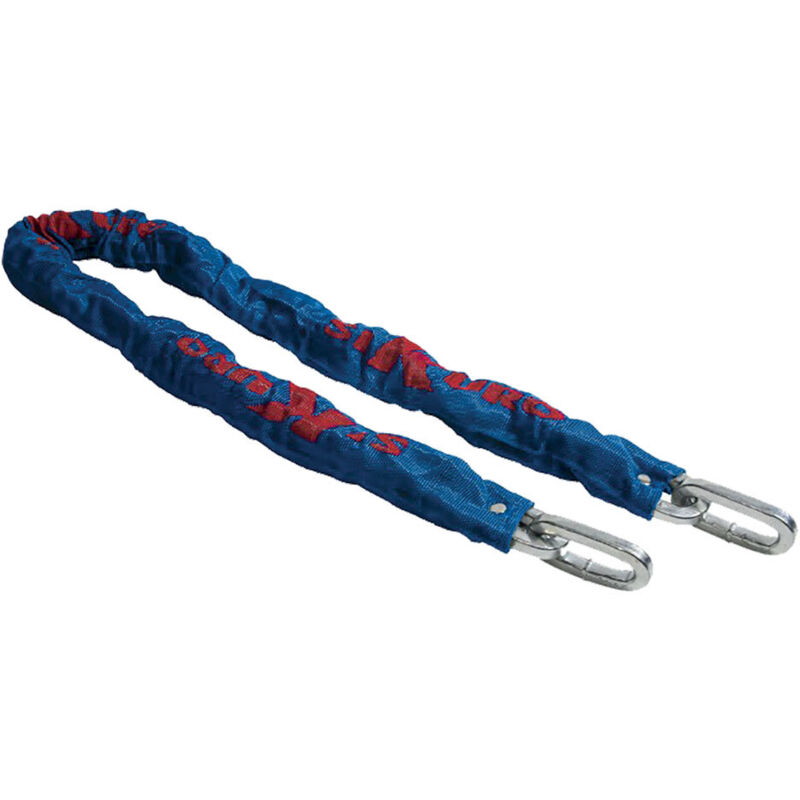 In acciaio, cementata zinco cromata. Ricoperta con guaina di tessuto telato. Maglia quadra. mm 10 x cm 200
