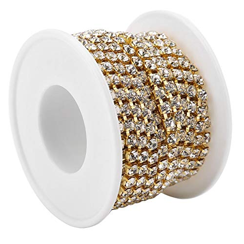 SS16, Catena di Strass di Cristallo - SS16 5 M/Rotolo Cristallo Strass Catena Fai Da Te Moda Vicino Coppa Catena Abbigliamento Bellezza Accessori per Artigianato Cucito Scrapbooking Telefoni(Dorato)