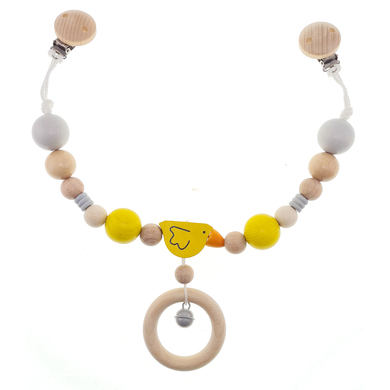La catenella per carrozzina aiuta il bambino a fare i primi tocchi e le prime prese. Sferragliare, sentire, toccare, afferrare e molto altro ancora è possibile con il ciondolo - un ottimo compagno per la casa e per i viaggi. L'articolo è composto da elementi in legno e due clip. Con le clip, il ciondolo può essere facilmente attaccato alla carrozzina, al lettino o ai vestiti. Dettagli del prodotto: Dimensioni (lunghezza x larghezza x altezza): 35,3 x 12,3 x 3,3 cm Bellissime catene colorate per carrozzina Per carrozzina o lettino Realizzate con legni locali non trattati 100 % Made in Germany Materiale: legno di faggio Età: da 6 mesi Attenzione! Assicurarsi che il rimorchio sia sempre attaccato all'indumento o alla carrozzina. Controllare regolarmente il giocattolo e rimuoverlo immediatamente in caso di difetti o danni. Non allungare mai il giocattolo e non attaccare mai il ciondolo a corde, nastri, cinghie o parti libere dei vestiti. Il bambino potrebbe strangolarsi con esso. Utilizzare sotto la diretta supervisione di adulti.