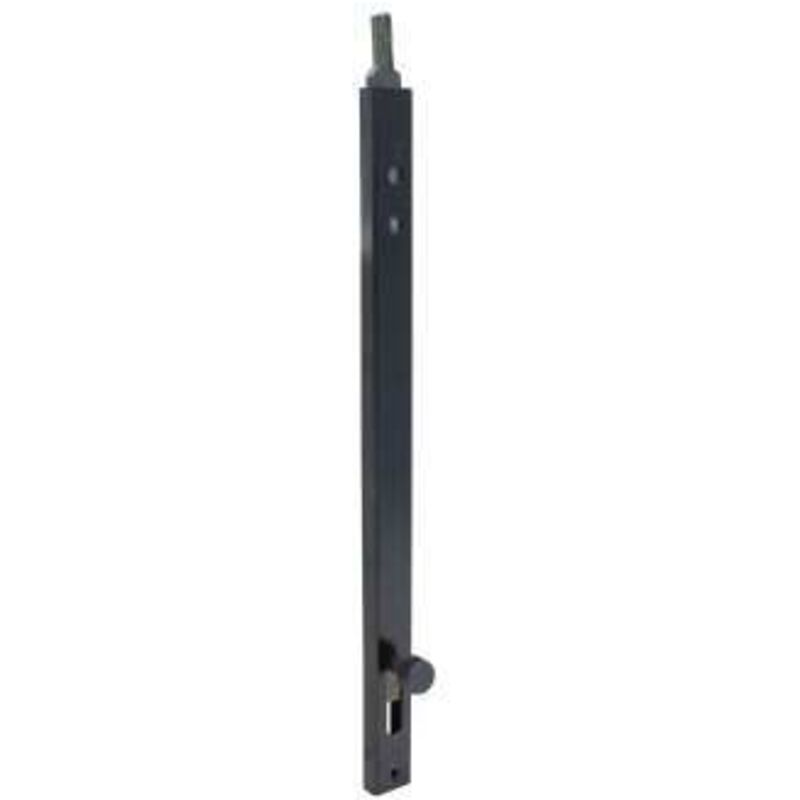 Catenaccio in acciaio plastificato per uso esterno con finitura bronzata, utilizzato principalmente nel settore dell'arredamento su porte e chiusure in legno.