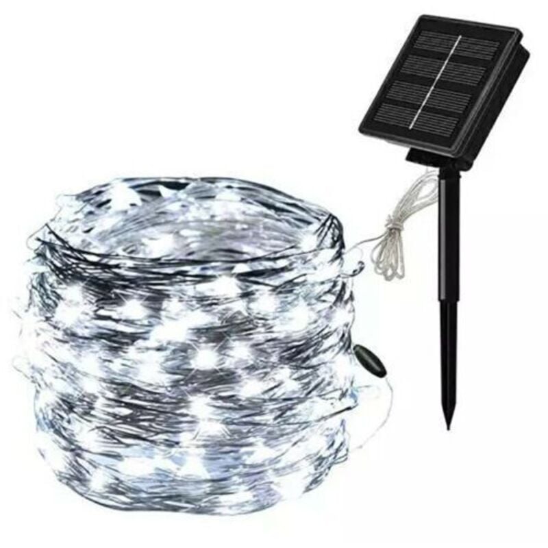Catenaria 100 LED danno luce intensa con un basso consumo energetico. La funzione impermeabile ti consente di usarlo anche nei giorni di pioggia. Il filo di rame pieghevole consente di creare qualsiasi forma desiderata. Perfetto per decorazione, albero di Natale, Halloween, celebrazione, festa, guardaroba, festa in giardino, recinzione, ecc. E' un regalo per la tua famiglia o gli amici. MAGGIORI INFORMAZIONI Caratteristiche principali: LED: 100 Tempo di ricarica: 6 ore (sotto il sole) Materiale: rame e ABS Colore della luce: Bianco Freddo Lunghezza: 10mt circa La confezione contiene: Nr.1 Catena luci 100 LED ad energia solare Nr.1 Picchetto