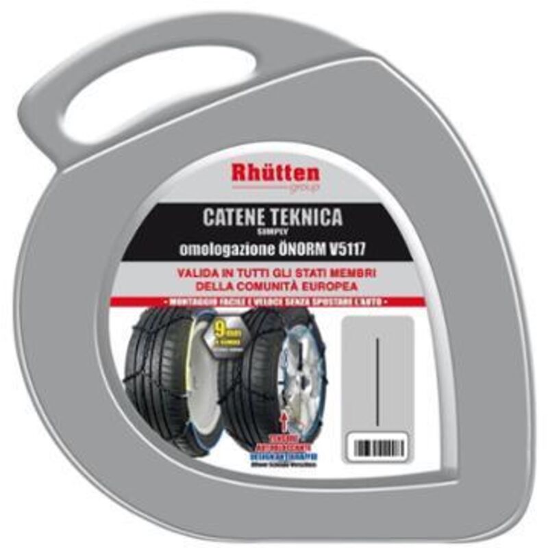 Catena a rombo 9mm BLACK LOOK ad elevata resistenza e cementata. Anelli battistrada a sezione "D" per una migliore aderenza. Cavo flessibile in acciaio ricoperto con guaina bicolore. Tensione mediante pratico dispositivo autobloccante in materiale speciale antiruggine e nuovo design antigraffio. Guanti e maglie in dotazione per eventuali riparazioni. Trattamento antiruggine. Valigetta con dispositivo antiscivolo. Omologazione ÖNORM V5117.