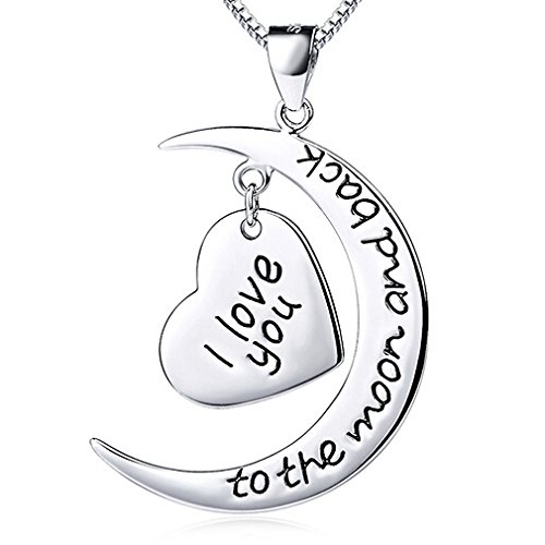 Catenina da 45 cm con ciondolo in argento sterling a forma di cuore e luna, con incisione in lingua inglese “I Love You To The Moon And Back” (“ti amo fino alla luna”);