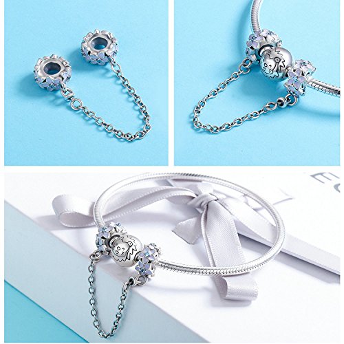 Catenina di sicurezza, in argento sterling 925 al 100%, decorata con margherite viola smaltate, adatta per uso con charm, per braccialetto, gioiello fai da te