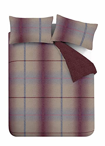 Catherine Lansfield Bedding Berwick - Set copripiumino per letto king size, in cotone spazzolato, con federe, colore: prugna