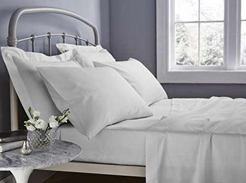 Catherine Lansfield, lenzuolo con angoli 500 TC, in cotone, Bianco, doppio lenzuolo con angoli elastici