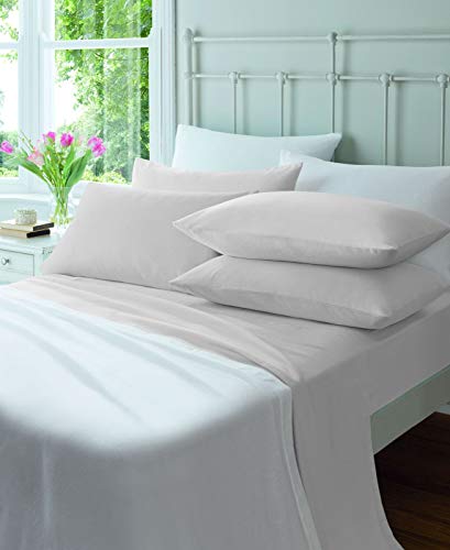Catherine Lansfield CL Home - Lenzuolo con angoli elasticizzati per letto matrimoniale, 145 g/mq, tinta unita, colore: bianco