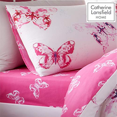 Catherine Lansfield Lenzuolo Singolo, Farfalla, Rosa, 90 x 25 x 190