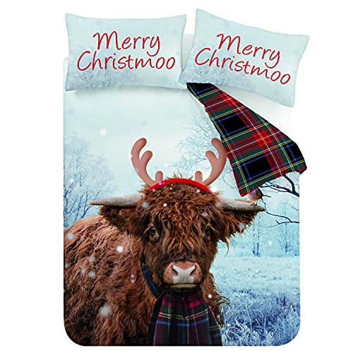 Catherine Lansfield Merry Christmoo Easy Care - Set copripiumino per letto king size, multicolore