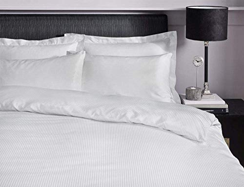 Catherine Lansfield Platinum - Lenzuolo con angoli elasticizzati, righe satinate, 300 fili, per letto doppio, colore: bianco