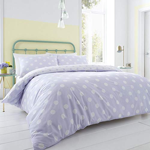 Catherine Lansfield Polka DOT Copripiumino, Pile, Lilla, Set piumone 1 Piazza