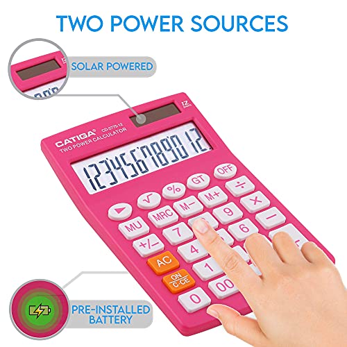 CATIGA calcolatrice da Tavolo con 12 cifre Screen Display LCD, casa o L'Ufficio, Facile da Usare con Chiare funzioni di visualizzazione/Memoria, cd-2775 (Rosa)