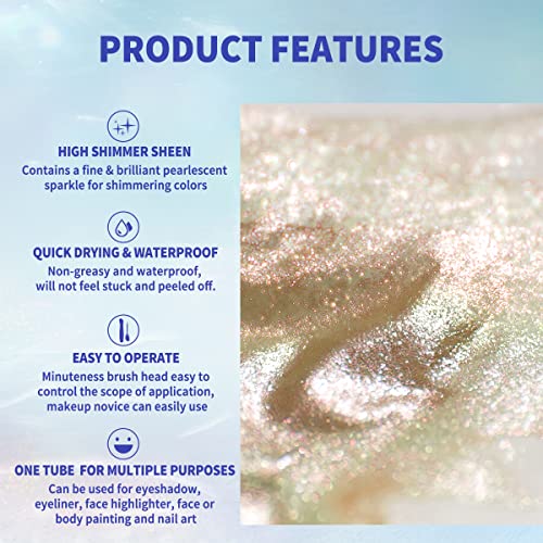 Ombretto Multifunzione - Può anche essere usato come penna per eyeliner colorata. Adatto principalmente per occhi, labbra, clavicola,guance e adatto a tutti i tipi di pelle, con paillettes luccicanti adatte per il trucco degli occhi fumosi, il trucco da sposa, il trucco per le feste o il trucco casual.