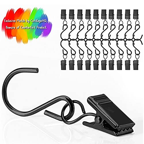 CattleyaHQ 40 Pezzi Clip per Tenda con Ganci,Ganci Appendiabitiv in Metallo, Mollette Metalliche con Ganci,Clip per Foto con Scatola (Nero)