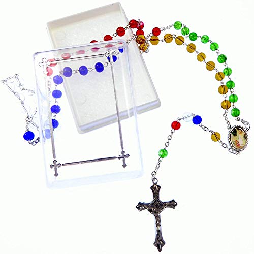 La&v Cattolica Vetro Missionario Rosario Collana Angelo Custode Giunzione Rosso Blu in Scatola