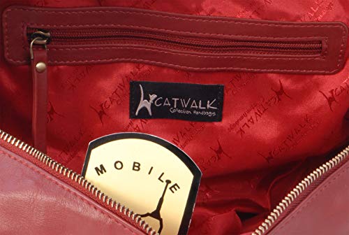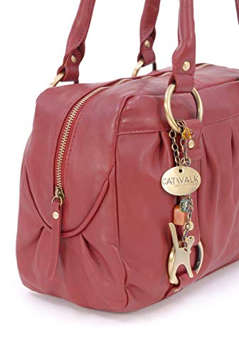 Catwalk Collection Handbags - Vera Pelle - Borsa a Spalla/Borse a Mano - Con Ciondolo a Forma di Gatto - Megan - ROSSO