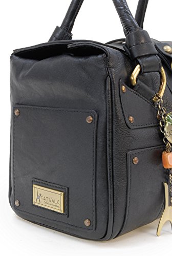 Catwalk Collection Handbags - Vera Pelle - Borsa a Spalla/Borse a Mano - Con Ciondolo a Forma di Gatto - Claudia - NERO