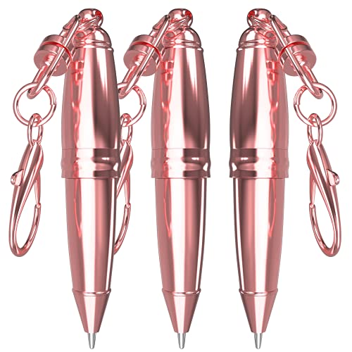 Catwalk Mini Penne Colorate - Mini Penna con Portachiavi - Penne Gel Tascabili e Divertenti - Micro Penna a Sfera per Scrivere - Set Penne da 3 con Diverse Fantasie Uniche (Rose Gold)