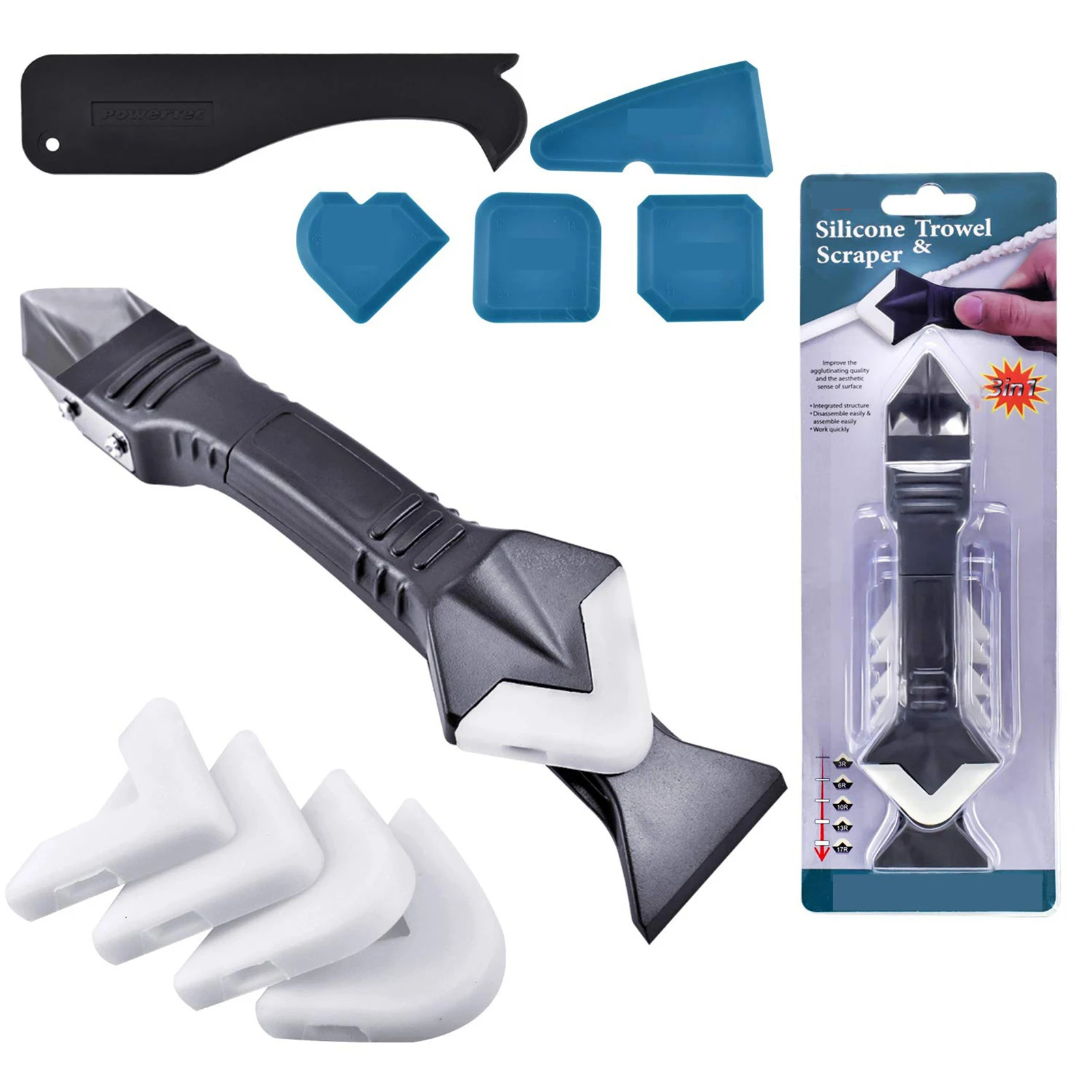 3in1 Caulking Removal Tools Set Kit Sealant Finishing Tool Grout Scraper Caulk Remover with Replaceable Caps for Kitchen _WK