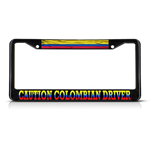 Caution driver colombiana bandiera, ondulato metallo nero cornice targa tag Holder