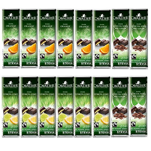 Cavalier Barrette Di Cioccolato Con Eritritolo+Stevia E Senza Aggiunta Di Zuccheri, 16x40 Grammi, Fondente, Fondente-Limone, Fondente-Arancio