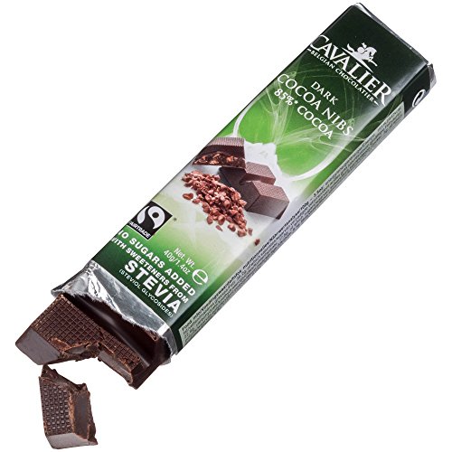 Cavalier Belgian Chocolatier - Barretta di cioccolato fondente con nibs di cacao - dolcificato con stevia - 40g