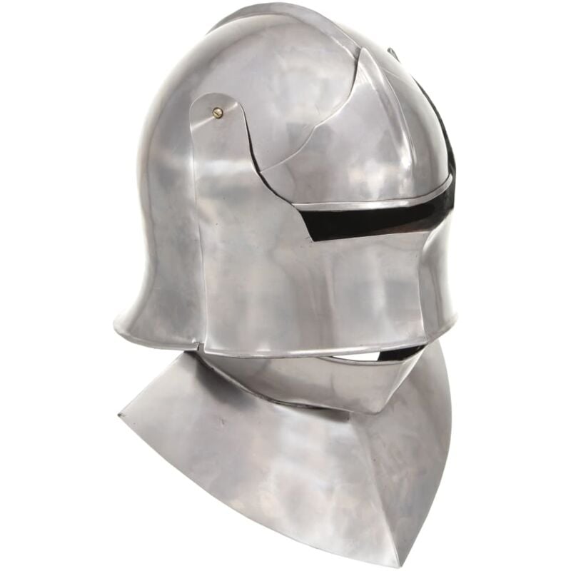 Questo elmo dall'aspetto in stile anticato, chiamato elmo Schaller con sporgenze sul collo, è ottimo per LARP (gioco di ruolo dal vivo), cosplay, feste a tema storico, festa di Halloween, oggetti di scena teatrali e rievocazioni storiche. L'elmetto da armatura è una replica esatta di un originale elmetto da cavaliere medievale. Realizzato in acciaio calibro 18 lucido, unisce stile antico e materiale robusto in un elmo accattivante, che si abbina perfettamente al vostro abbigliamento da cavaliere. Questo elmo da armatura completamente indossabile copre la testa e presenta piccole aperture per la visibilità e la ventilazione, offrendo una protezione di gran lunga superiore per il viso e il collo rispetto ai normali elmi. Inoltre, è anche un bel pezzo da esposizione. Colore: Argento Materiale: Acciaio calibro 18 (lucidato) Dimensioni: 30 x 23 x 33 cm (L x P x A) Replica di un elmo da cavaliere medievale Schaller con aspetto in stile anticato SKU: 286220