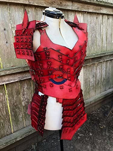 Cavaliere medievale Samurai in pelle armatura per LARP e donna in pelle rossa Halloween Lady Costume