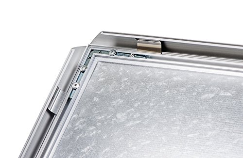 Dettagli prodotto: Cornice in alluminio con cornici a scatto (profilo anodizzato color argento, largezza dei profilati 2,5 cm, profili sottostanti con aperture scarica acqua extra grandi, angoli al vivo), manifestI (non compresi) coperti da pellicola trasparente (pellicola trasparente antiriflettente resistente ai raggi UV), dimensioni: 61,5 cm x 108 cm