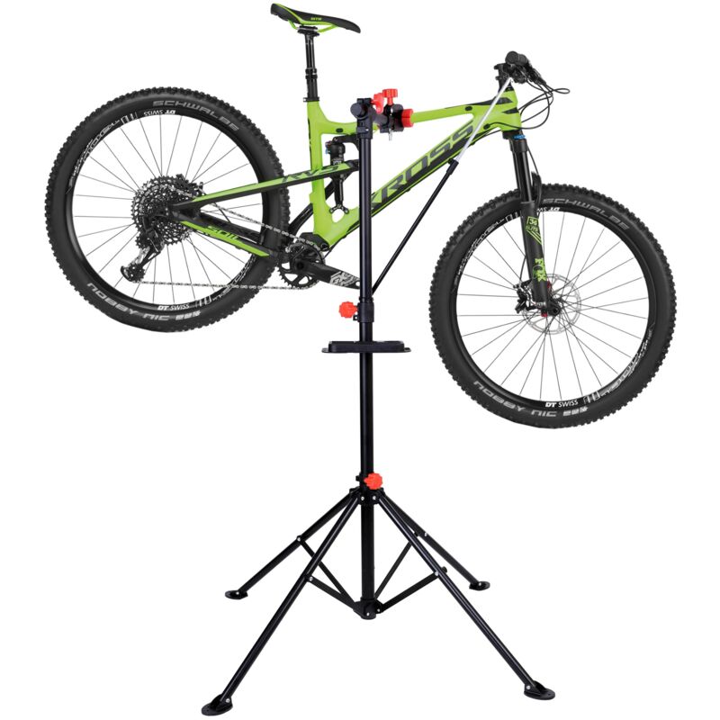 Cavalletto di servizio per bicicletta da 188 cm, regolabile e girevole Perfetto per tutte le ispezioni e riparazioni della bicicletta. È pratico ed ergonomico, così possiamo dimenticare il mal di schiena e lavorare in condizioni scomode. Puoi regolare comodamente l'altezza e la distanza delle gambe per adattare le dimensioni alle tue esigenze. Il supporto è compatibile con tutte le biciclette. Fissiamo la bici al reggisella o al tubo del telaio. Il modello è dotato di testa girevole e struttura girevole, grazie alla quale la bici montata sul cavalletto può essere ruotata attorno al proprio asse. Il cavalletto si distingue per le maniglie in gomma, grazie alle quali possiamo essere sicuri di non danneggiare lo strato di vernice della nostra bicicletta. Le maniglie possono essere regolate da 25 a 70 mm. Il modello è dotato di un pratico ripiano con piano magnetico e numerosi portautensili. Il supporto è solido ed eccezionalmente stabile e può essere fissato al suolo per una stabilità