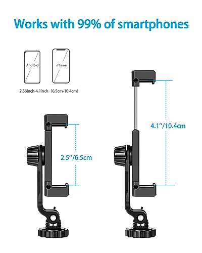 【Compatibilità Universale】Il morsetto del supporto per treppiede del telefono è regolabile da 2,5" a 4,1" (da 6,5 a 10,4 cm), questo adattatore è compatibile con la maggior parte degli smartphone, come iPhone 14 Pro Max 13 Pro 12 11 Max X Xs Max XR Samsung Galaxy S22 Ultra Google Pixel 7 Pro Sony Xperia Xiaomi OnePlus Oppo, e altre marche sul mercato.
