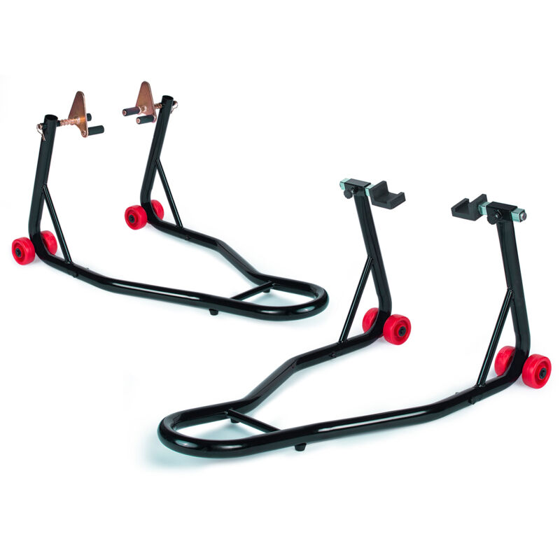 Cavalletto per moto anteriore e posteriore Humberg Modello: MT2 Caratteristiche principali: nuovo prodotto di valore completo funzionamento semplice sollevatori per le ruote posteriori e anteriori della moto adattatori regolabili stabile grazie alle doppie ruote acciaio verniciato a polvere di alta qualità prezzo per 2 pezzi moto Humberg supporto L'ascensore è realizzato con materiali di altissima qualità. Per la produzione è stato utilizzato un tubo d'acciaio verniciato a polvere con un diametro di 32 mm. Possibilità di adattamento alla larghezza individuale della moto. Tutte le parti sono protette contro la corrosione mediante verniciatura a polvere o zincatura. Le ruote sono realizzate in composito di alta qualità. DATI TECNICI: modello: MT2 lunghezza: 80 cm altezza: 46 cm diametro tubo telaio: 32 mm regolazione adattatore anteriore: 24 - 32 cm regolazione adattatore posteriore: 22,5 - 31 cm materiale: acciaio verniciato a polvere capacità di carico del set: 300 kg (150 kg per