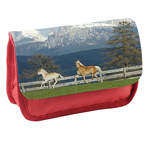 Cavalli 10006, Cavallo in Campo, Rosso Scuola Bambini Sublimazione di alta qualità Polyester Astuccio Matita Caso con Design Colorato. 21x13 cm.