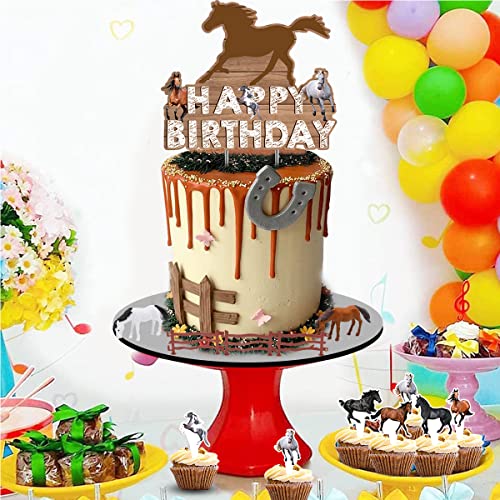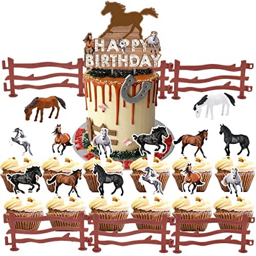 Cavalli Cupcake Toppers 21 Pezzi Cavalli Figurine Torta Topper Decorazioni per Torte Cavalli Giocattolo Recinzione Happy Birthday Topper per Torte Party Supplies per Bambini