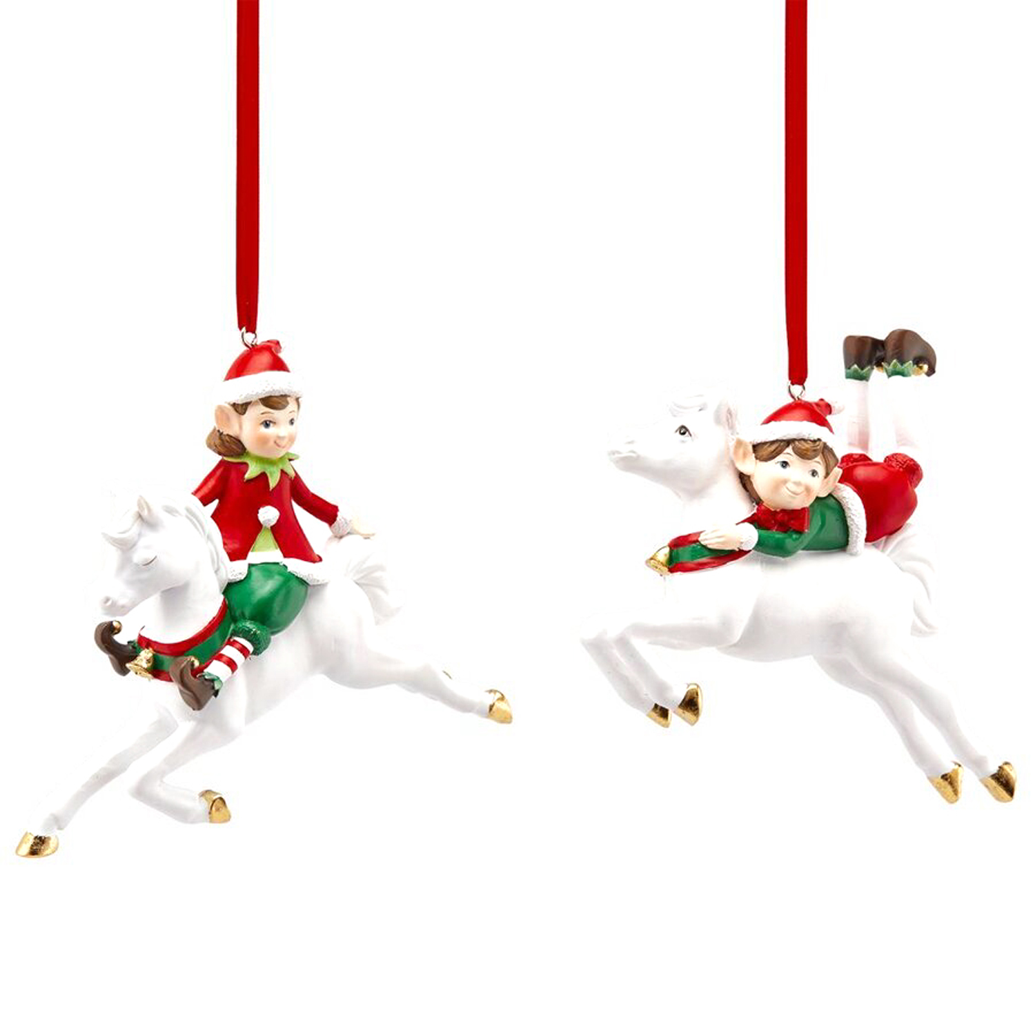 Quest'anno aggiungi qualche decorazione originale al tuo albero di Natale... come questo elfo con cavallo! La posizioni facilmente sui rami perchè ha già il nastrino integrato. Realizzata in poliresina, porterà lo spirito del Natale nella tua casa. Dimensioni: 11x9 cm. L'immagine del prodotto è puramente illustrativa e sarà spedito in uno dei colori e decori disponibili. In caso di esercizio del diritto di ripensamento le spese di spedizione saranno a carico del consumatore.