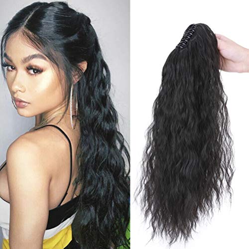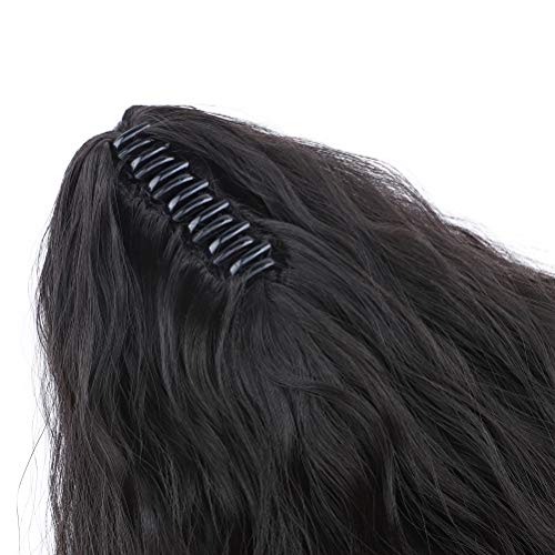Coda di Cavallo Estensioni Dei Capelli Claw Clip in Ponytail Onda di mais Ricci Ondulati Lunghi Capelli Sintetici Pezzo Parrucchino 60cm Nero naturale