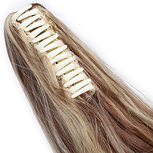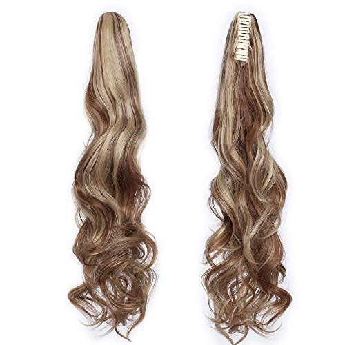 SEGO Coda di Cavallo Extension Coda Capelli Clip Pinza in Extensions Ponytail Ricci Mossi Fascia Unica Posticci 60 cm 150g [Castano Chiaro mix Biondo Cenere]