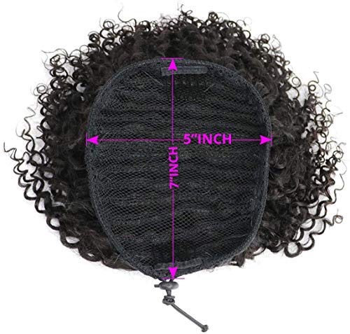 Coda di Cavallo Extension Drawstring Capelli Afro Veri Umani 25cm, Extension Capelli Veri Drawstring Coda di Cavallo Ricci Afro Kinky 10 Pollici 100g 1B# Nero Naturale