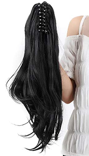 Coda di Cavallo Clip in Hair Extensions Capelli Parrucchino Extension Clip Capelli Veri Claw on Ponytail 45cm Ondulato Nero scuro