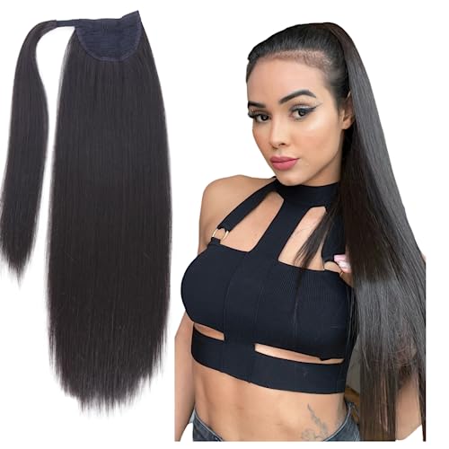 Coda Di Cavallo Ser Mulher con Laccio Capelli Lisci 70 cm, extension in Termofibra Facile e veloce da applicare (2 Natural Black)